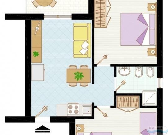 blocích řadových vilek. Leží v klidné části Bibione Spiaggia