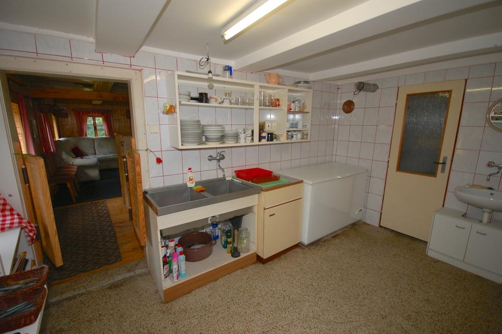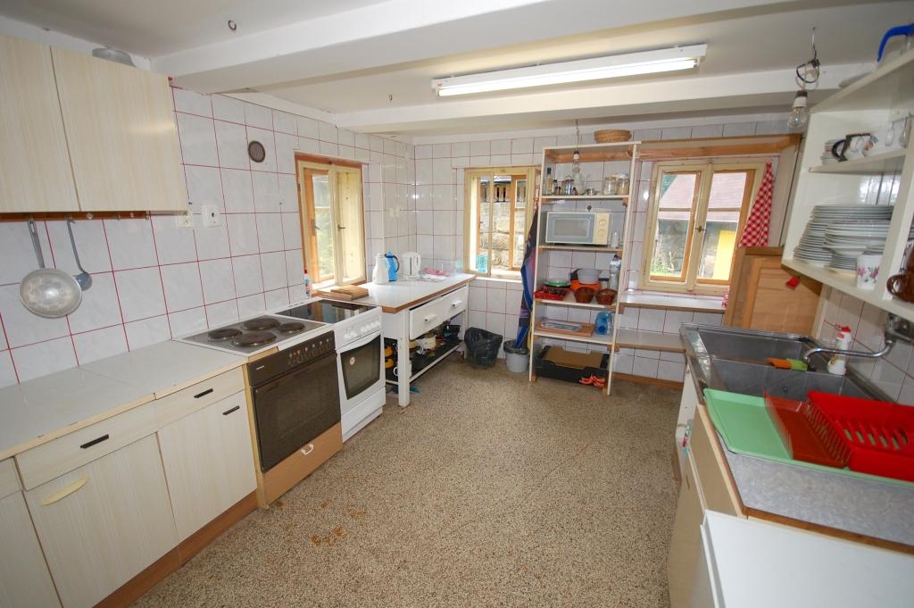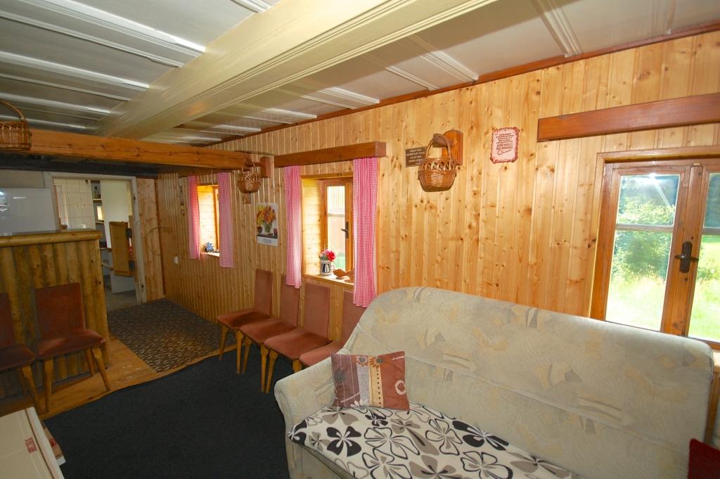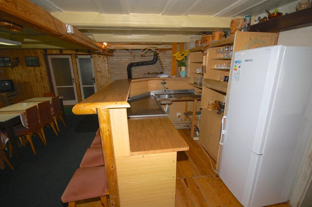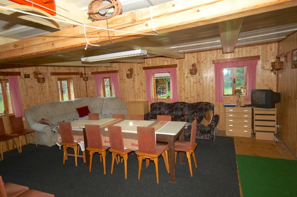 | Společenská místnost v přízemí je průchozí do kuchyně. |