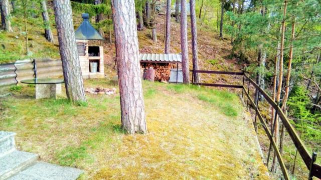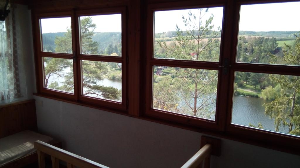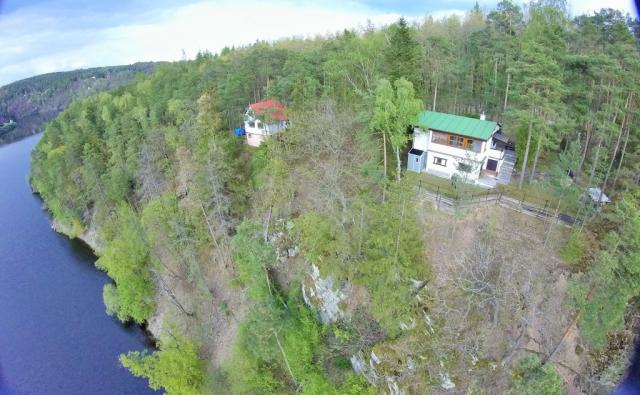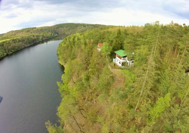 | Nevhodné pro malé děti. Chata stojí sice na rovině na okraji lesa, avšak nad srázem k přehradě . |