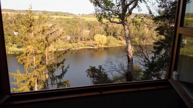 | Nevhodné pro malé děti. Chata stojí sice na rovině na okraji lesa, avšak nad srázem k přehradě . |