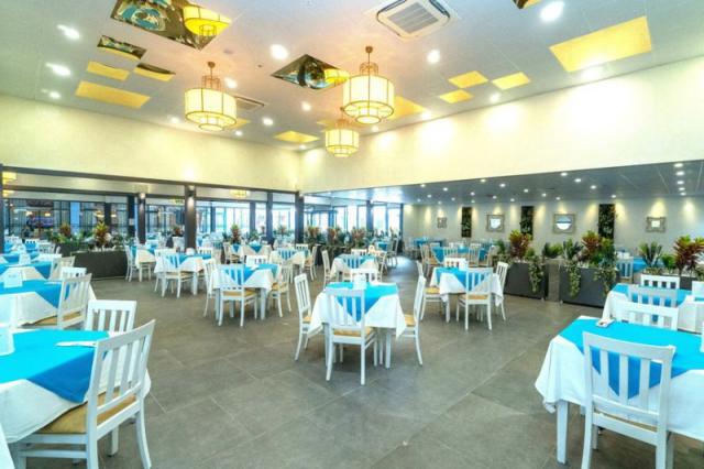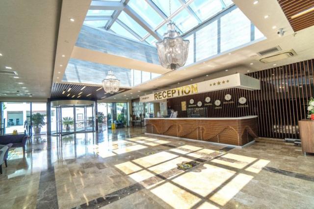 | Hotel tvoří 7 čtyřposchoďových budov s 389 pokoji a součástí hotelu je lobby s recepcí a barem, dále restaurace s velkou terasou, à la carte restaurace, TV místnost, plážový bar, několik obchodů, diskotéka, hrací automaty, internetový koutek (za poplatek), dětské hřiště, konferenční místnost, wellness centrum, fitness, dva bazény s oddělenou částí pro děti, tobogány, vnitřní bazén, pool bar. Lehátka a slunečníky u bazénů i na pláži zdarma (plážové osušky za poplatek). Wi-Fi v lobby zdarma. |
