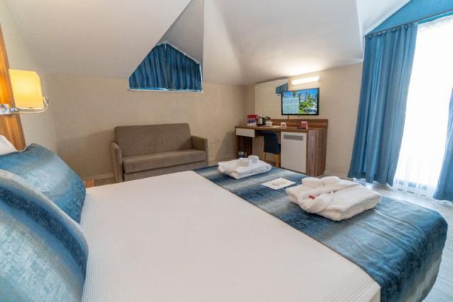 | Velmi oblíbený a dobře hodnocený hotel především německými turisty. Má výbornou polohu, cca 300 metrů od velmi pěkné dlouhé písečné pláže, podél které vede promenáda v podobě parku. Nákupní možnosti v Çolakli jsou ve vzdálenosti cca 500 metrů a centrum Side je vzdálené 8 km (možnost využít místní dolmuše nebo taxi). |