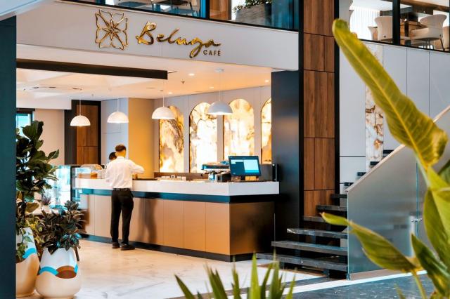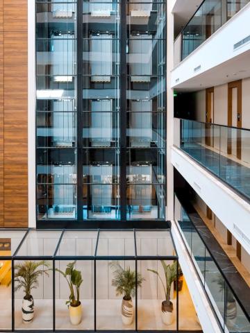 Vstupní hala s recepcí, výtahy, restaurace, lobby bar, bar u