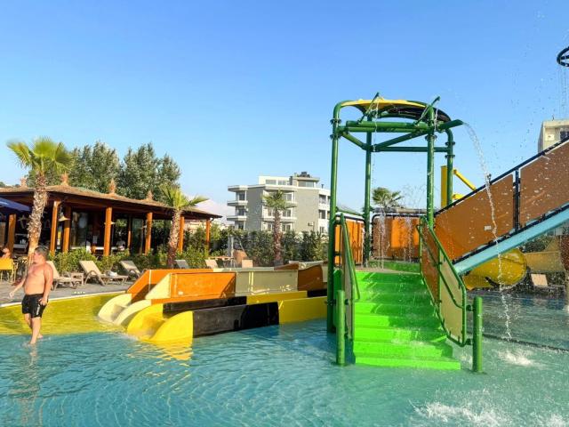 | Aquapark || Animace v češtině 15.6.- 10.9. || Dětský klub 15.6.- 10.9. || Písčitá pláž cca 200 m || Slunečníky a lehátka na pláži zdarma || Moderní interiéry |