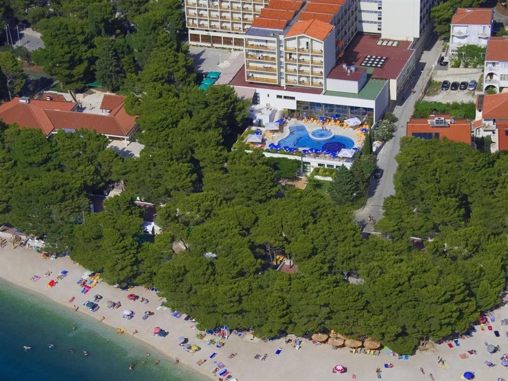 Pláž od hotelu odděluje místní komunikace (vzdálenost z hotelu cca 50 m). Krásná pláž s bílými oblázky a pozvolným vstupem do vody lemovaná bohatým borovicovým porostem skýtající příjemný stín v horkých letních dnech. Místní pláž je označena Modrou vlajkou pro svou čistotu a kvalitu služeb. Pláže jsou vybaveny sprchami, převlékárnami a je možné zapůjčit si zde za poplatek lehátka a slunečníky (dle místního ceníku). Cestujete s dětmi?Dítě do 1,99 let bez nároku na lůžko a služby je zdarma. Dítě ve věku 2-11,99 let je na přistýlce se slevou. Dítě ve věku 2-11,99 let na pevném lůžku s 1 dospělou osobou v pokojích 2+0 Standard je za zvýhodněnou cenu. V případě varianty s autobusovou dopravou se hradí za dítě zdarma cena dopravy stejná jako u dospělé osoby. Dětská postýlka je na vyžádání u CK a za poplatek 5 € (platí se na místě). V hotelu probíhají animační programy pro děti a dospělé (program je v režii hotelu, v místním nebo anglickém jazyce). Sport a zábava