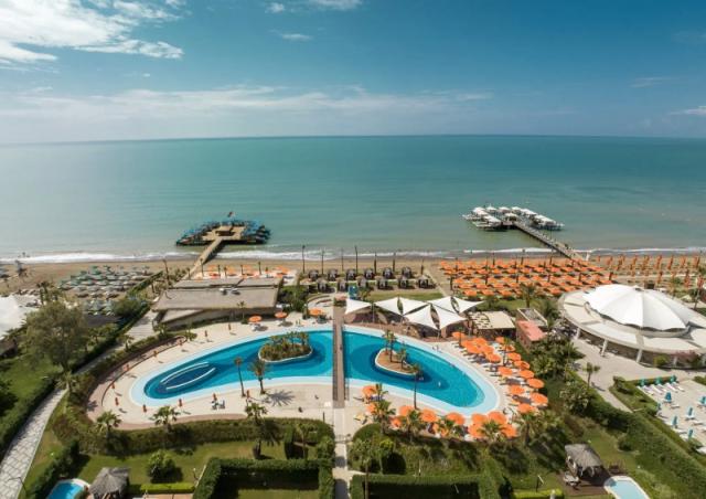 | Hotel leží přímo u soukromé pláže v letovisku Belek, jehož centrum je od hotelu vzdáleno 7 km. Obchody a restaurace lze nalézt i ve městě Kadriye, které se nachází 2,5 km od hotelu. V těsné blízkosti hotelu se vyskytuje 18jamkové hřiště Kaya Palazzo Golf Club. Belek je znám především profesionálními golfovými hřišti, proto je označován mekkou golfistů. Další výhodou tohoto letoviska jsou dlouhé pláže s jemným zlatavým pískem, jako dělané pro večerní procházky. Letiště v Antalyi je vzdáleno 27 km od hotelu. |