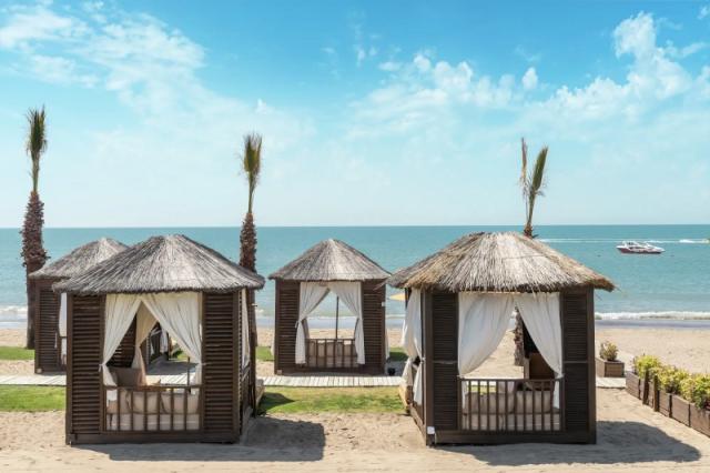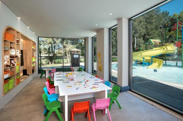 | K dispozici vstupní hala s recepcí (24 hodin), Wi-Fi zdarma, lobby, hlavní restaurace, 5 a la carte restaurací (např. italská nebo asisjká), cukrárna, bary, 20 venkovních bazénů a 2 vnitřní bazény, tobogány, wellness a fitness centrum, obchody a kadeřnictví. Pro děti nabízí dětské koutky, dětský bazén a hřiště. V hotelu se nachází tenisové kurty, fotbalové hřiště a hřiště pro plážový volejbal. |