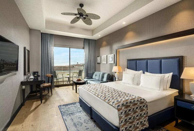 | Dvoulůžkové pokoje Superior s výhledem na moře nebo bazén s možností dvou přistýlek disponují vlastní koupelnou s WC, sprchovým koutem a vanou, vysoušečem vlasů, telefonem, klimatizací, SAT-TV, minibarem (zdarma), psacím stolem, trezorem a balkonem. Možnost objednat pokoje typu Swim Up nebo apartmány - cena na vyžádání. |