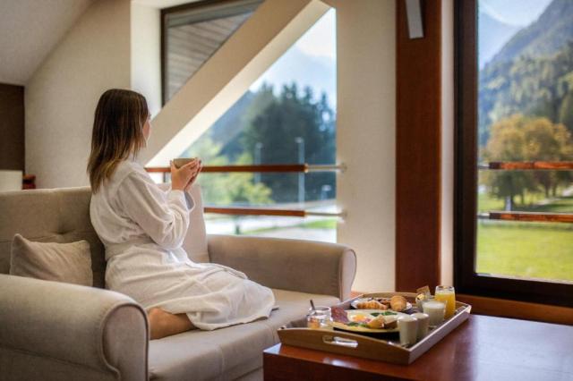 V srdci Julských Alp se rozprostírá nejznámější slovinské turistické středisko Kranjska Gora. Přitahuje návštěvníky po celý rok svým půvabem a širokou škálou aktivit. Je součástí národního parku Triglav a leží na hranici 3 států - Rakouska, Itálie a Slovinska. Destinace nabízí nádherné výhledy na Julské Alpy, bohatou síť turistických a cyklistických tras, možnosti horské turistiky, lezení i horské koupání. V létě si zde můžete užít i golf, jízdu na koni nebo relaxaci v místních wellness centrech. Centrum města je plné obchodů, kaváren a restaurací s místními specialitami, a příroda v okolí láká k piknikům, výletům a objevování krás slovinské a alpské krajiny. Ubytování v hotelu Kranjska Gora****Hotel je obklopen úchvatnými výhledy a je ideální volbou pro milovníky přírody a outdoorových aktivit. Hotel se nachází v těsné blízkosti cyklistických a turistických stezek, malebného jezera Jasna, lyžařských sjezdovek a nabízí ideální výchozí bod pro celou řadu aktivit. Disponuje celkem 74 pokoji s výhledem na zelenou krajinu, svahy nebo centrum města. Hotel je vybaven recepcí, restaurací, barem, vinárnou, WiFi připojením zdarma, parkovištěm za poplatek 5 €/den, posilovnou, tenisovým kurtem a wellness centrem. Klienti mohou za poplatek využít služeb wellness, kde je k dispozici vnitřní bazén (první hodina zdarma), vířivka, finská sauna, parní sauna a infra sauna. Dále si klienti mohou za poplatek objednat různé masáže například thajské masáže, sportovní masáže nebo horké kameny. Na recepci akceptují platby kartami Visa, Mastercard a Maestro. Dvoulůžkové pokoje AtticPokoje o rozloze cca 12 m2 jsou vybaveny vlastním sociálním zařízením, fénem, TV, telefonem, minibarem (za poplatek), trezorem a WiFi připojením. Možné využít i jako jednolůžkový pokoj za příplatek. Dvoulůžkové pokoje StandardPokoje o rozloze cca 15 m2 jsou vybaveny vlastním sociálním zařízením, fénem, TV, telefonem, minibarem (za poplatek), trezorem a WiFi připojením. Maximální obsazení pokoje jsou 2 dospělé osoby + 1 dítě do 6,99 let na lůžku s rodiči. Dvoulůžkové pokoje ComfortPokoje o rozloze cca 18-25 m2 jsou vybaveny vlastním sociálním zařízením, fénem, TV, telefonem, minibarem (za poplatek), trezorem a WiFi připojením. Maximální obsazení pokoje jsou 2 dospělé osoby + 1 dítě do 6,99 let na lůžku s rodiči. Dvoulůžkové pokoje SuperiorPokoje o rozloze cca 22 m2 jsou vybaveny vlastním sociálním zařízením, fénem, TV, telefonem, minibarem (za poplatek), trezorem, WiFi připojením. Maximální obsazení pokoje jsou 2 dospělé osoby + 1 dítě do 6,99 let na lůžku s rodiči. Pokoje Standard Suite s možností 1 přistýlkyPokoje o rozloze cca 30 m2 jsou vybaveny vlastním sociálním zařízením, fénem, TV, telefonem, minibarem (za poplatek), trezorem, pohovkou a WiFi připojením. Maximální obsazení pokoje jsou 3 dospělé osoby. Pokoje Junior Suite s možností 1 přistýlkyPokoje o rozloze cca 35 m2 jsou vybaveny vlastním sociálním zařízením, fénem, TV, telefonem, minibarem (za poplatek), trezorem, pohovkou, balkonem a WiFi připojením. Maximální obsazení pokoje jsou 3 dospělé osoby. Stravování formou snídaně nebo polopenze