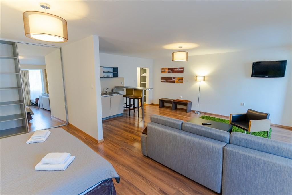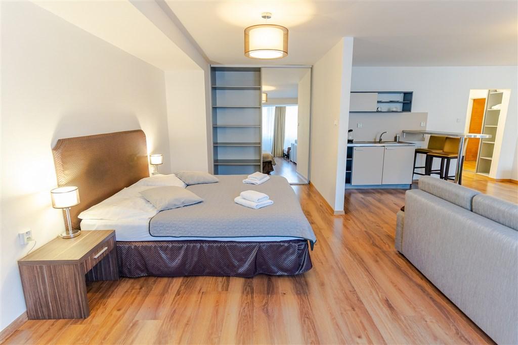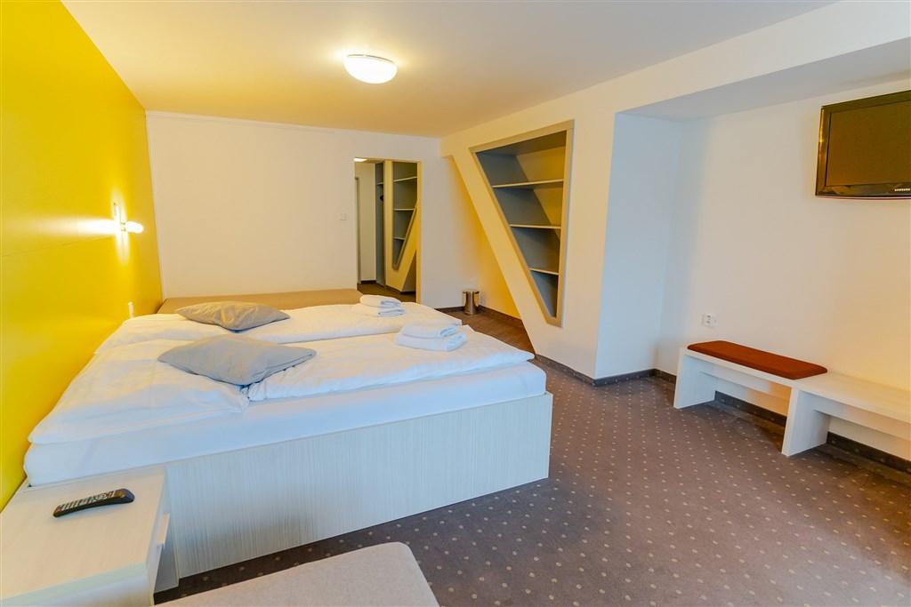 | Dvoulůžkový pokoj Standard: manželská postel, možnost přistýlky pro 1 nebo 2 osoby, koupelna se sprchou, samostatné WC, SAT TV, Wi-Fi. Rodinný pokoj: manželská postel, možnost přistýlky 2 přistýlek ve formě přenosného lůžka a rozkládacího gauče, koupelna se sprchou, WC, SAT TV, lednička, Wi-Fi. Jednoložnickový apartmán: oddělená spací a obývací část, manželská postel, gauč, koupelna se sprchou, WC, SAT TV, lednička, Wi-Fi. Dvouložnickový apartmán: dvě ložnice a obývací část, manželská postel, gauč, koupelna se sprchou, WC, SAT TV, lednička, Wi-Fi. Apartmán Ostredok: čtyři pevná lůžka, gauč, koupelna se sprchou i vanou, WC, SAT TV, lednička, Wi-Fi. |