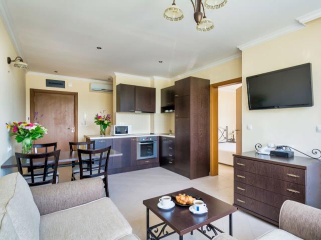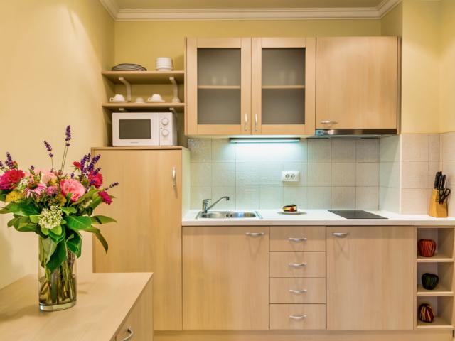 | Apartmánový komplex Santa Marina nabízí ubytování ve studiích S 2+1 (jedna obytná místnost s kuchyňským koutem) s možností jedné přistýlky (rozkládací křeslo, maximální obsazenost tři dospělí) a apartmánech typů A 2+2 (ložnice a denní místnost s kuchyňským koutem s možností dvou přistýlek - rozkládací gauč, maximální obsazenost tři dospělí nebo dva dospělí a dvě děti) a A 4+1 (dvě ložnice a denní místnost s kuchyňským koutem s možností jedné přistýlky - rozkládací gauč, maximální obsazenost pět dospělých). Apartmány a studia s balkonem a sociálním zařízením (sprchový kout, WC, fén) jsou klimatizovány (klimatizace zdarma) a vybaveny TV/SAT, Wi-Fi (zdarma) a telefonem. Kuchyňský kout je vybaven chladničkou, mikrovlnnou troubou, varnou deskou a kuchyňskou linkou se základním vybavením. |