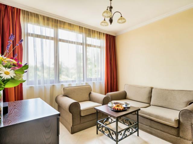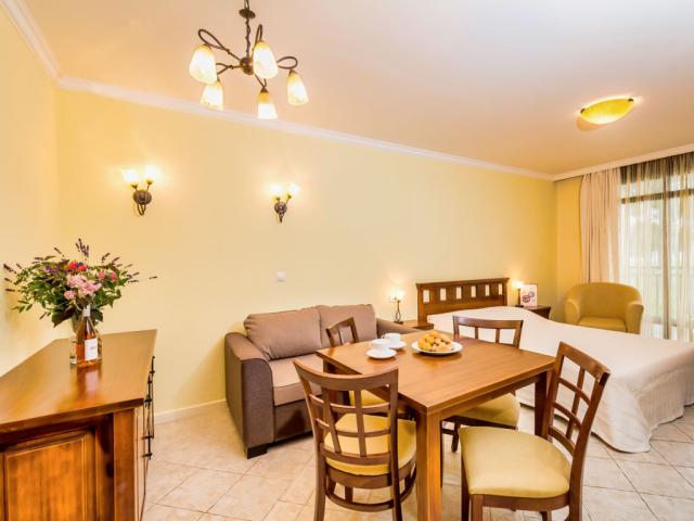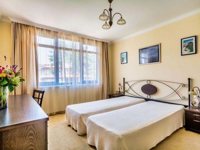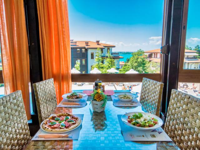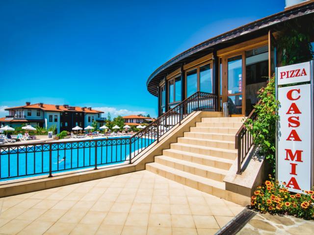 (nebo její část) při ukončení pobytu. Zdarma: Wi-Fi ve společných prostorách, slunečníky a lehátka u bazénů, doprava v komplexu. Za poplatek: internetový kout, SPA centrum (relaxační zóna, pára, ruské lázně, masáže, sauna, vířivka, salon krásy, kadeřnictví, fitness), hřiště na fotbal, tenisové centrum s osmi tenisovými kurty, stolní tenis, lekce tenisu, škola plavání, herna, lékař, pravidelná doprava do Sozopolu a zpět, prádelna a čistírna, parkoviště. |