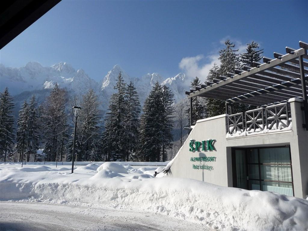 | hotel leží přímo pod impozantním horským masivem Špik, v srdci