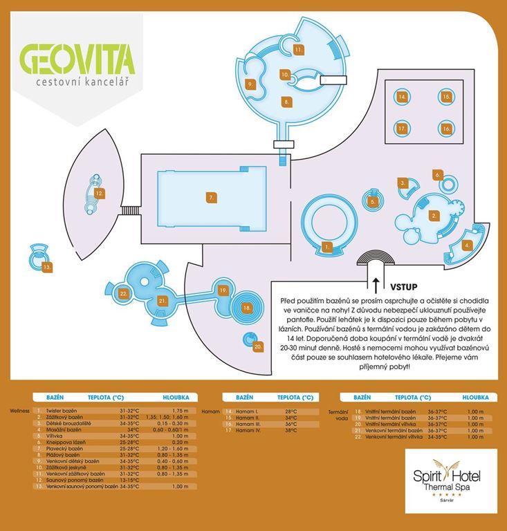 Thermal Spa Spirit Sárvár ***** leží v maďarském lázeňském městečku Sárvár, v regionu, který se může pochlubit křišťálově čistým vzduchem. Hotel je situován v klidné lokalitě u sedmi jezer poblíž malebných lesů. Do centra historického města je to jen 15 minut pěšky. Hotel nabízí nadstandardní služby, úchvatné interiéry, luxusní ubytování, velmi prostorné a elegantní wellness centrum, 22 bazénů plněných minerální vodou, lázeňskou atmosféru a malebné okolí. Hosté zde mohou prožít dokonalou harmonii těla a duše. 5 hvězdiček hotelu symbolizuje harmonii 5 elementů života: vody, země, ohně, vzduchu a ducha. Základem pro léčebné služby je světoznámá léčivá sárvárská voda. Sárvár Sárvár - elegance, termální klid a lázeňská tradice s moderním nádechemSárvár, jedno z nejznámějších a nejoblíbenějších lázeňských měst v Maďarsku, se nachází v malebném regionu Západního Zadunají, nedaleko rakouských hranic. Je synonymem pro kvalitní wellness, léčivou termální vodu, upravené parky, bohatou historii a pohodovou atmosféru. Díky vysokému standardu služeb a široké nabídce aktivit si zde na své přijdou jak páry, tak rodiny i náročnější klientela hledající luxus a klid. Sárvárské lázně - léčivá voda a vodní zábava pro všechnySárvárské termální lázně patří mezi nejmodernější a nejlépe vybavené lázeňské komplexy v Maďarsku. Lázně využívají dvě termální prameny s rozdílným složením - jeden s vysokým obsahem sodíku a vodíku, druhý s bohatým obsahem minerálů, ideální pro léčebné i relaxační účely. Součástí areálu jsou: vnitřní a venkovní bazény s termální vodou wellness zóna se saunami, aromaterapiemi a relaxačními místnostmi aquapark pro děti s tobogány a skluzavkami klidové zóny pro páry i rodiny s malými dětmi Komfortní ubytování pro každý styl pobytuCK Geovita nabízí v Sárváru širokou škálu ubytování, která uspokojí různé potřeby hostů - od moderních apartmánů přes pohodlí hotelového servisu až po luxusní spa resorty: Aparthotel Onyx Luxury - moderní a elegantní apartmánový dům v blízkosti lázní, ideální pro hosty, kteří chtějí kombinovat nezávislost s pohodlím. Nabízí stylově vybavené apartmány, vlastní wellness a klidné prostředí. Ensana Thermal Sárvár Health Spa Hotel**** - hotel s dlouhou tradicí v centru Sárváru, přímo u zámeckého parku a botanické zahrady. Nabízí klidné prostředí, vlastní termální prameny, léčebné procedury a profesionální péči. Park Inn Sárvár by Radisson**** - oblíbený hotel s přímým krytým přístupem do termálních lázní, vhodný pro rodiny s dětmi. Nabízí moderní ubytování, pestré stravování formou bufetu a rodinnou atmosféru. Spirit Hotel Thermal Spa***** - jeden z nejluxusnějších wellness hotelů ve střední Evropě. Nabízí vlastní termální pramen, rozsáhlý spa & medical komplex se 22 bazény, špičkovou gastronomii a exkluzivní služby v pětihvězdičkové kvalitě. Zámecké město s historií a zeleníSárvár není jen o lázních - město má také bohatou historii a krásnou architekturu. Dominantou je Nádasdyho hrad, který ukrývá muzeum s expozicí o historii rodu i města. Procházky zámeckým parkem, botanickou zahradou nebo po březích řeky Rába přinášejí klid a kontakt s přírodou. Proč navštívit Sárvár?Sárvár nabízí vyvážený mix léčebné tradice, moderní relaxace, kvalitního servisu a bohaté historie. Ať už hledáte aktivní wellness dovolenou, odpočinek v luxusním prostředí, nebo příjemný pobyt pro celou rodinu, v Sárváru s CK Geovita najdete přesně to, co hledáte. Od apartmánového pohodlí až po pětihvězdičkový luxus - každý si zde přijde na své.