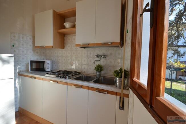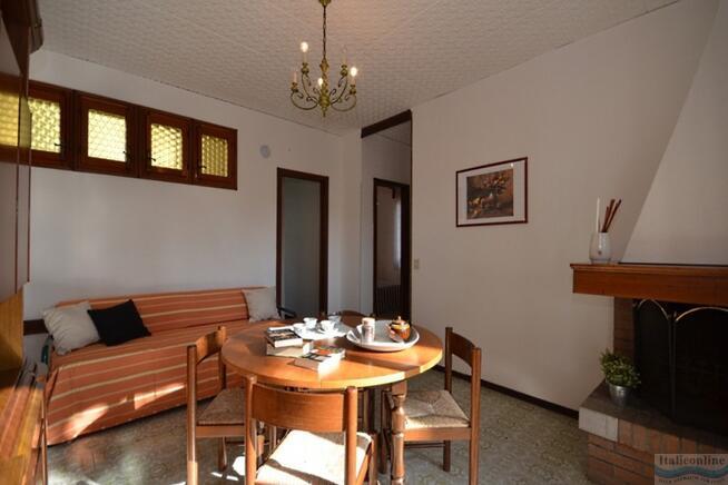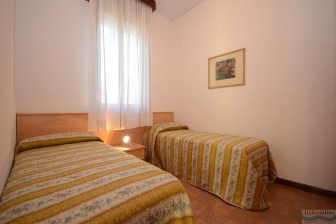 | dvoupatrový apartmán s klimatizací, částečně renovovaný. V přízemí je garáž, v 1.patře obývací místnost s kuchyňským koutem a rozkládacím gaučem pro 2 osoby, dvě dvoulůžkové ložnice, jednolůžkový pokojík, koupelna, balkon a krb. Pobyt se psy zakázán. |